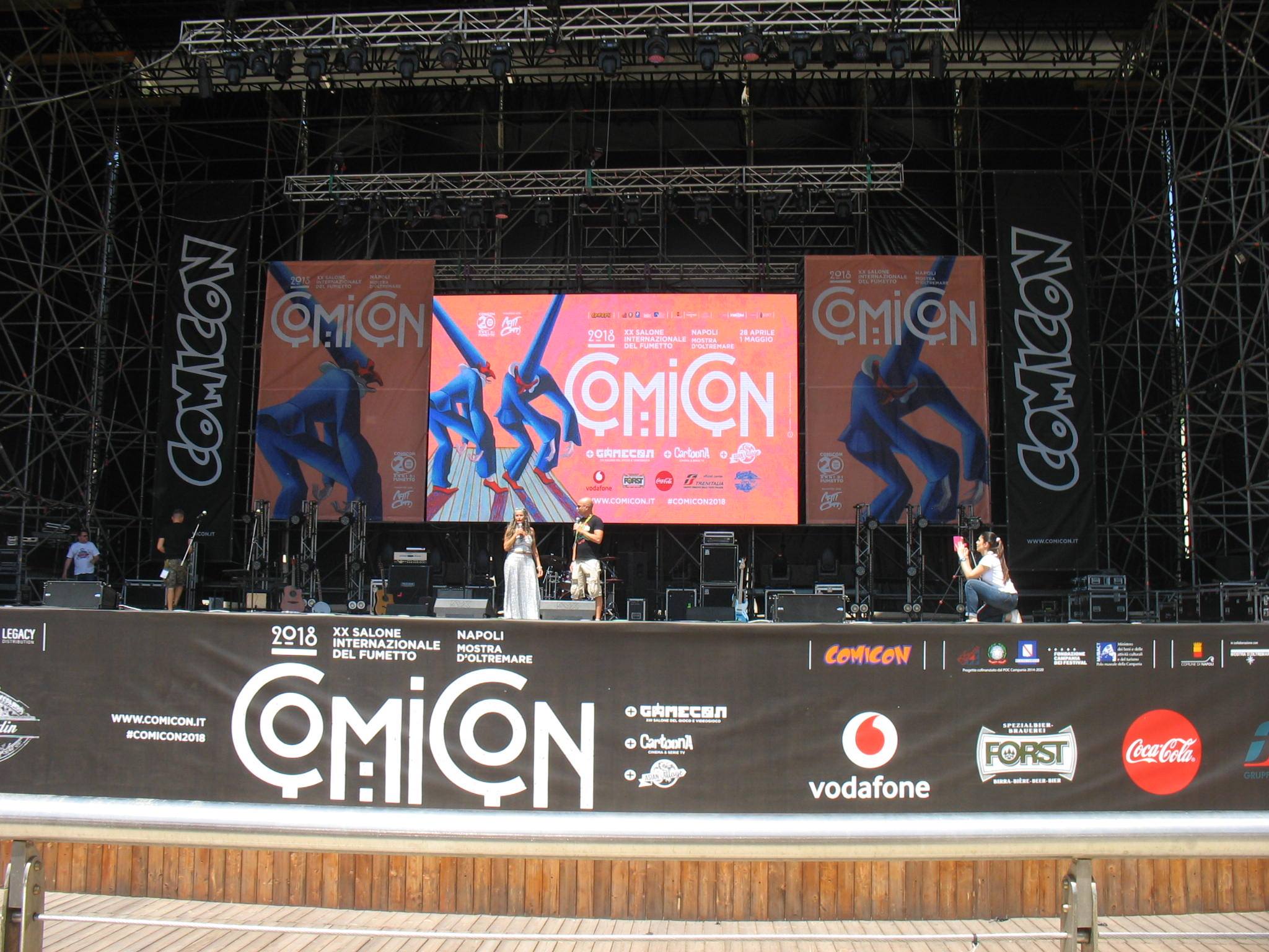 Quest’anno il palco che tradizionalmente era posizionato davanti la scalinata dell’auditorium alla vine del fiale delle fontane, è stato spostato nella prestigiosa e bellissiam Arena Flegrea. Un main stage che ha visto negli anni esibirsi tantissimi artisti e spettacoli del calibro di “Notre Dame de Paris”. Un palco immenso in una location dotata di un’acustica incredibile e con la possibilità di sedersi e non avere mai nessuno davanti. Un luogo perfetto per i tanti spettacoli musicali che il Napoli Comicon 2018 ha messo in programma.